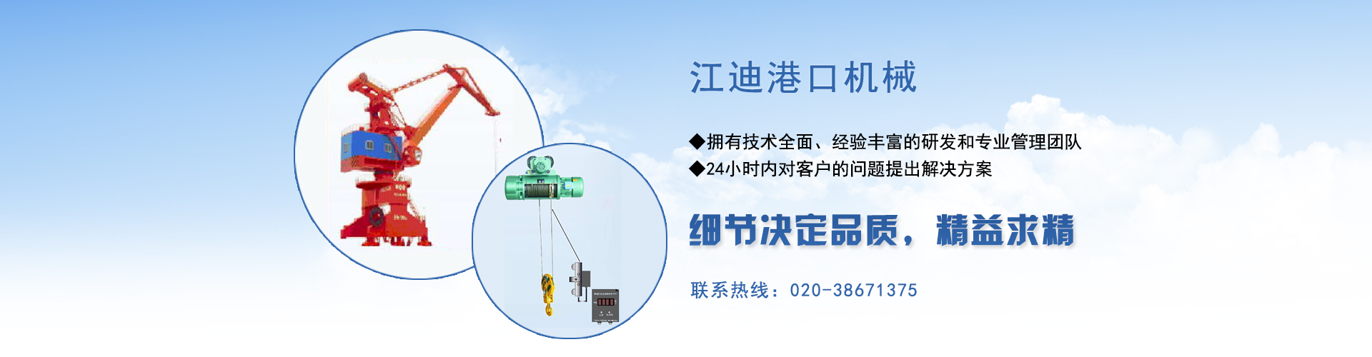 廣州江迪擁有10余名技術全面、經驗豐富的研發(fā)和專業管理團隊,其中博士1人,碩士2人。專業工程師6人。公司參股天津市華瑞港口機械設備有限公司。公司技術力量起步于港口起重設備,從理論研究、技術研發(fā)、生產制造到維修和技術改造,精研超過15年,設計、制造、維修的起重設備主要產品為:內核港口、企業碼頭集裝箱固定式起重機,包括抓斗吊鉤兩用的5t、10t、16t、25t、40t、50t等固定式起重機,還設計制造了船廠系列的20t、30t、40t等固定式和門座式起重機,產品幅射東北地區、渤海灣地區、長三角地區、珠三角和華南地區等多個省市大中型港口,特種設備檢驗一次通過率與長期使用安全合格率均為100%。團隊本著誠實守信與用戶至上的經營理念,生產安裝的產品和專業良好的售后服務,獲得用戶廣泛好評。